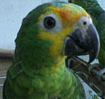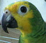Gemischt***, | Orange Stirn, Tendenz zur Gelbwangenamazone. Scheint wie Pino mehr Schwierigkeiten mit der Orientierung zu haben, hat auch vor allem Angst, was er/sie nicht kennt. | Blaustirn-Amazone*** sehr